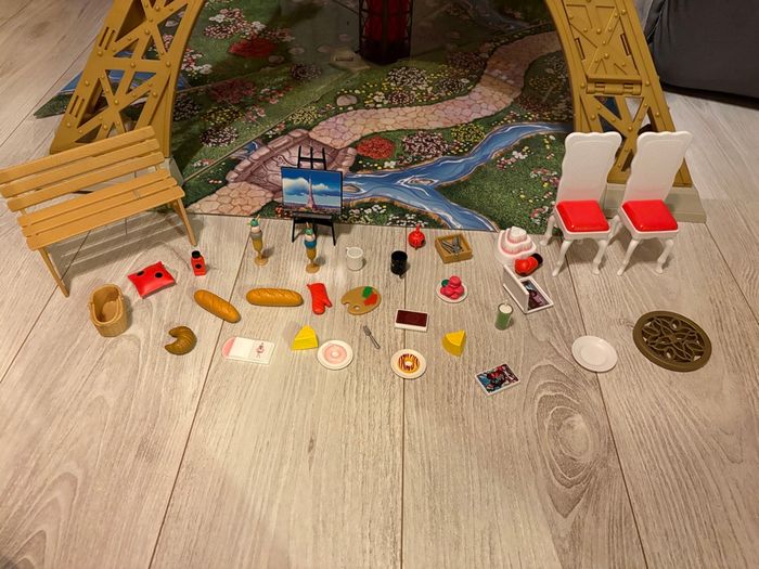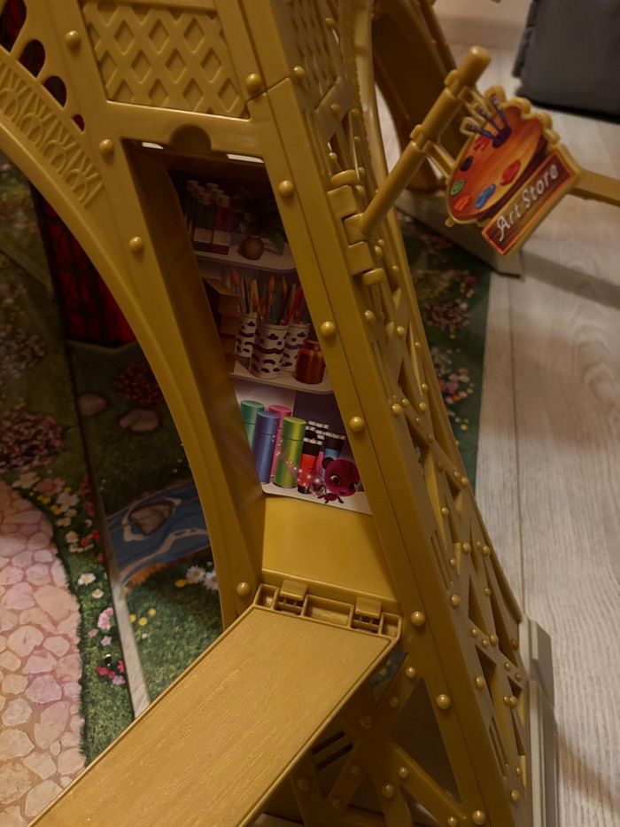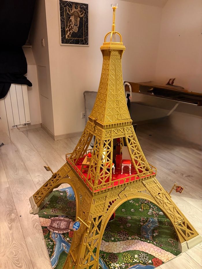 Tour Eiffel avec ascenseur, tyrolienne et divers espaces de jeux Neuve, juste montée Vendu avec le carton