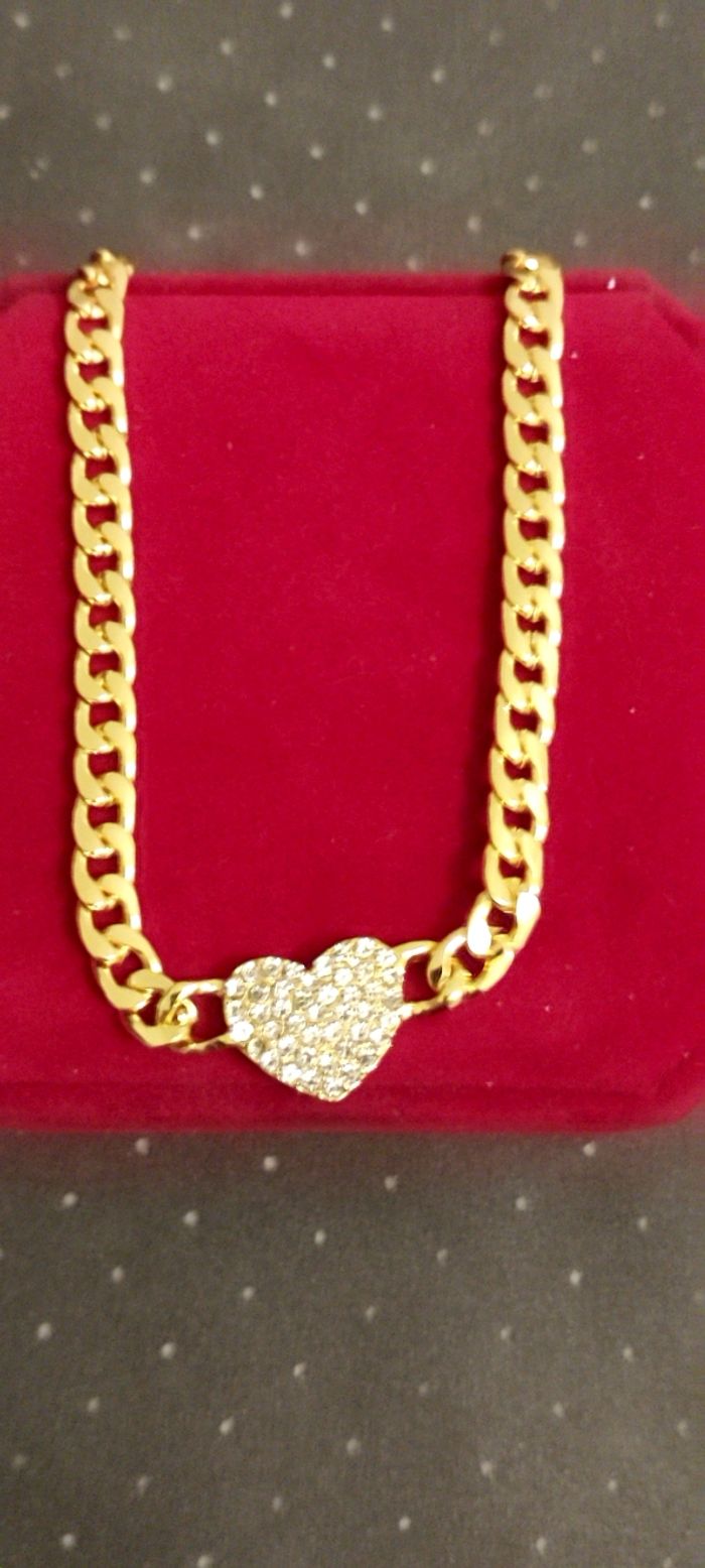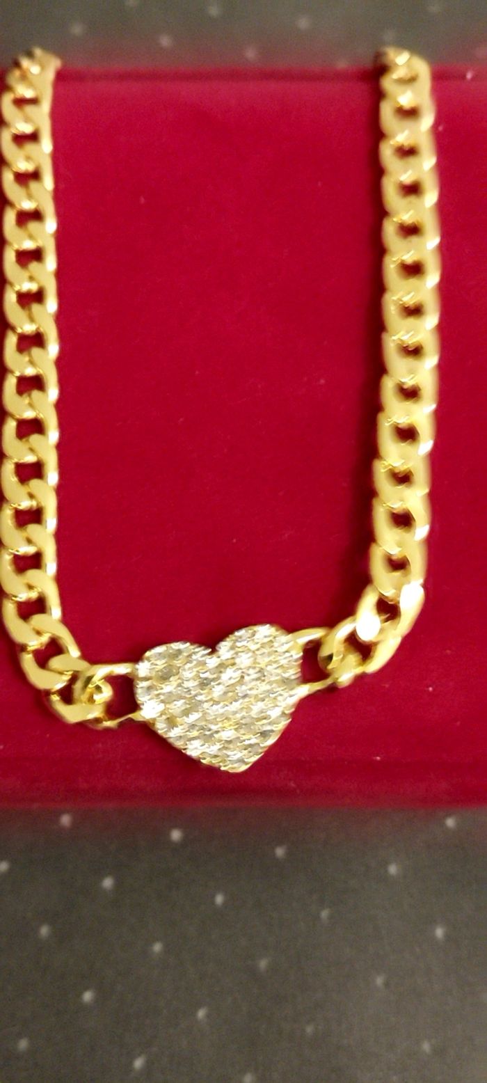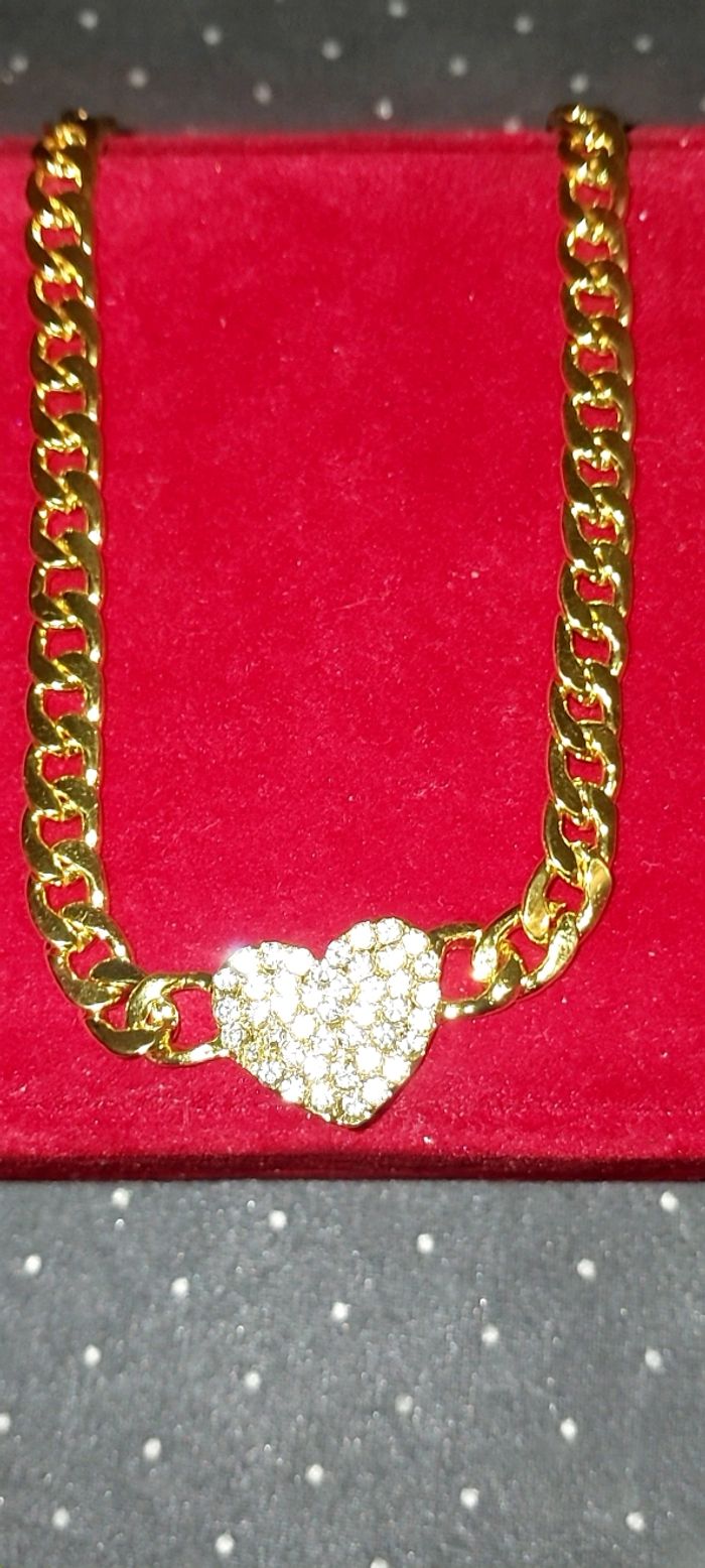 Collier en acier inoxydable doré – pendentif cœur scintillant  - photo numéro 1