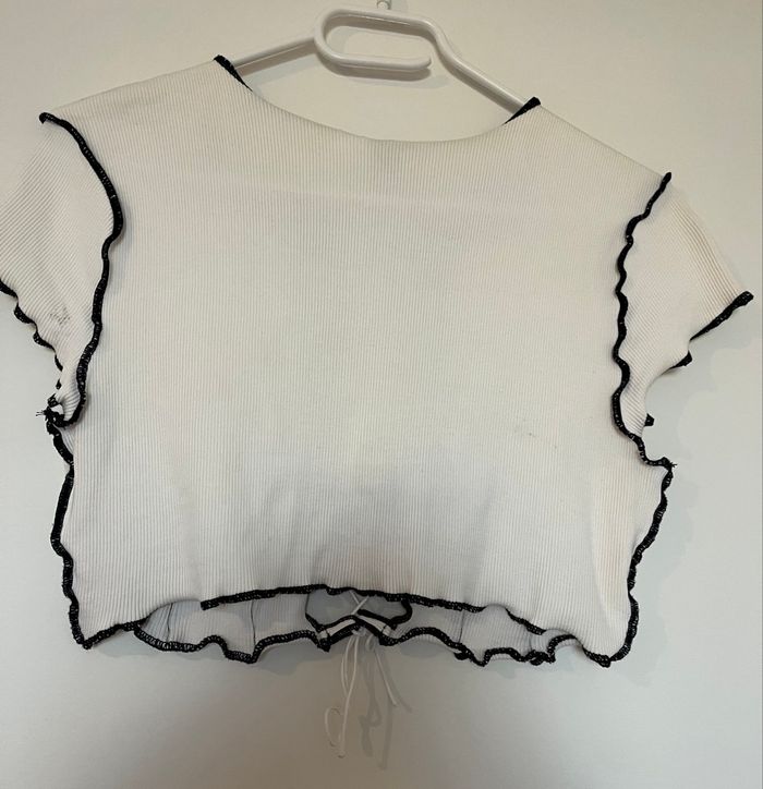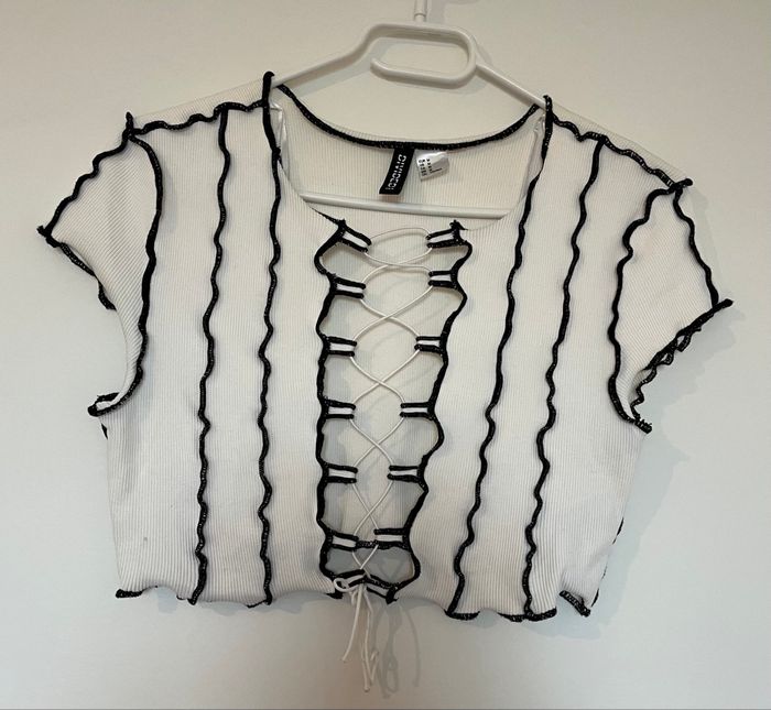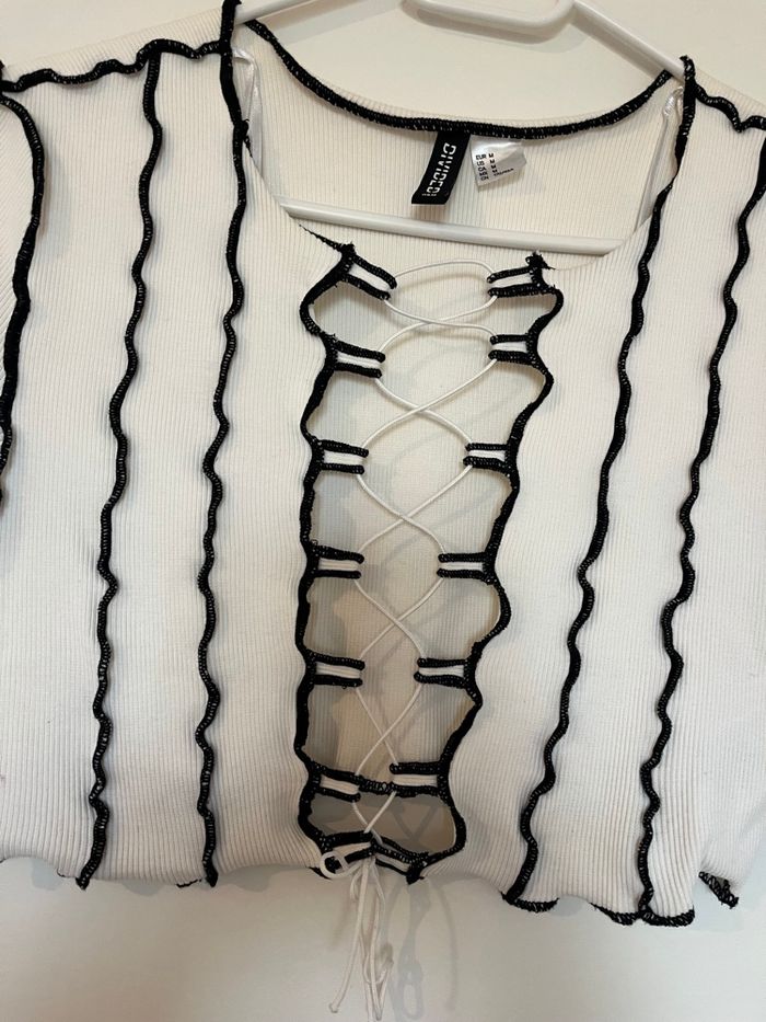 Petit haut échancré devant, H&M en taille M, je ne l’ai porté qu’une seule fois.