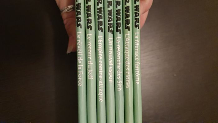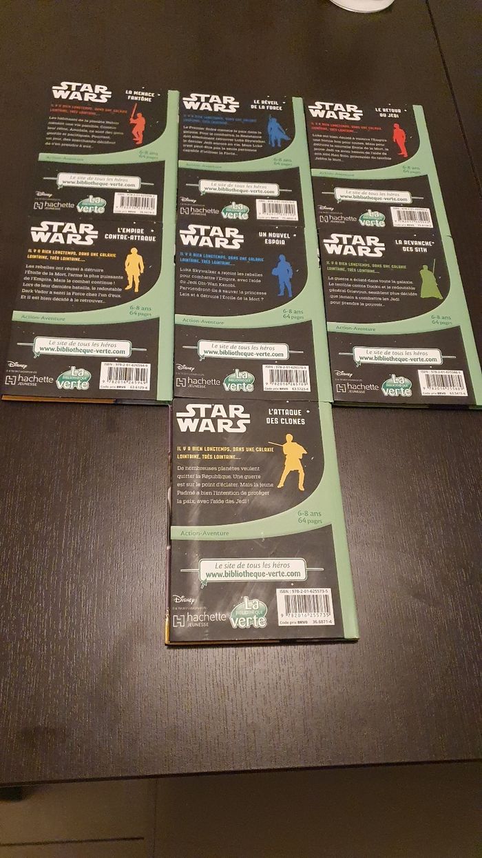 Je vends ce lot de 7 livres de la saga Star Wars, en parfait état : La menace fantôme L'attaque des clones La revanche des sites Un nouvel espoir L'empire contre attaque Le retour du jeudi Le réveil de la force