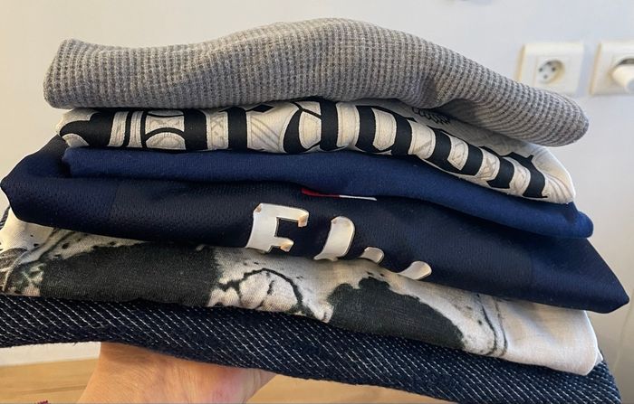 Lots 6 T-shirt homme taille M plusieurs marques,Kiabi /Gémo ici Paris Dimensions à Plat Longueur 72 cm Entre épaules 45 cm Entre Aisselles 50 cm manches courtes 2 t-shirt 1 Marine et 1 gris Kiabi très bon état 2 t-shirt Gémo 1 Marine/1 blanc avec motifs bon état petit défaut voir les photos 2 t-shirt -1 ici Paris Marine 1 avec motifs sans marque blanc bon état