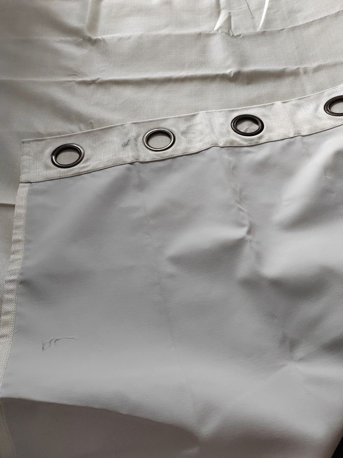 Rideau Becquet, triple enduction, 130x180, Blanc légèrement brillant tâché je n'enlève pas car il ne serait plus neuf