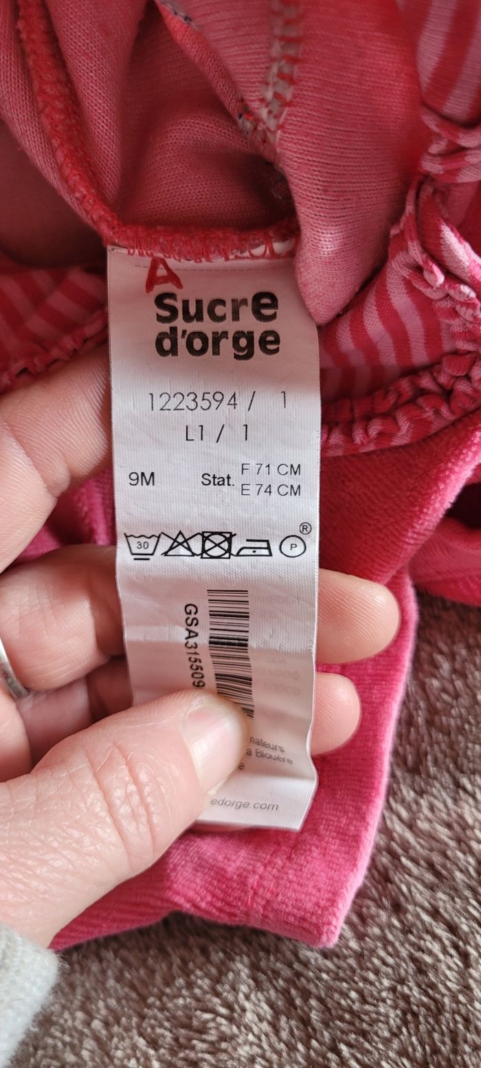 Pyjama Rose 9 mois Sucre d'orge Très bon état