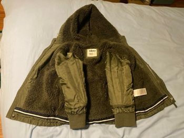 Parka bébé garçon taille 3 ans. Doublure et intérieur de la capuche en fausse fourrure. Réf. H2