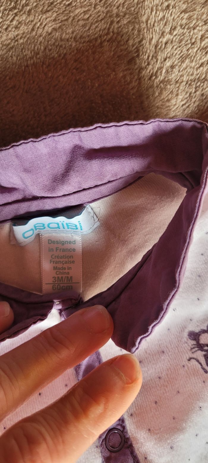 Pyjama Blanc et violet 3 mois Obaïbi Très bon état