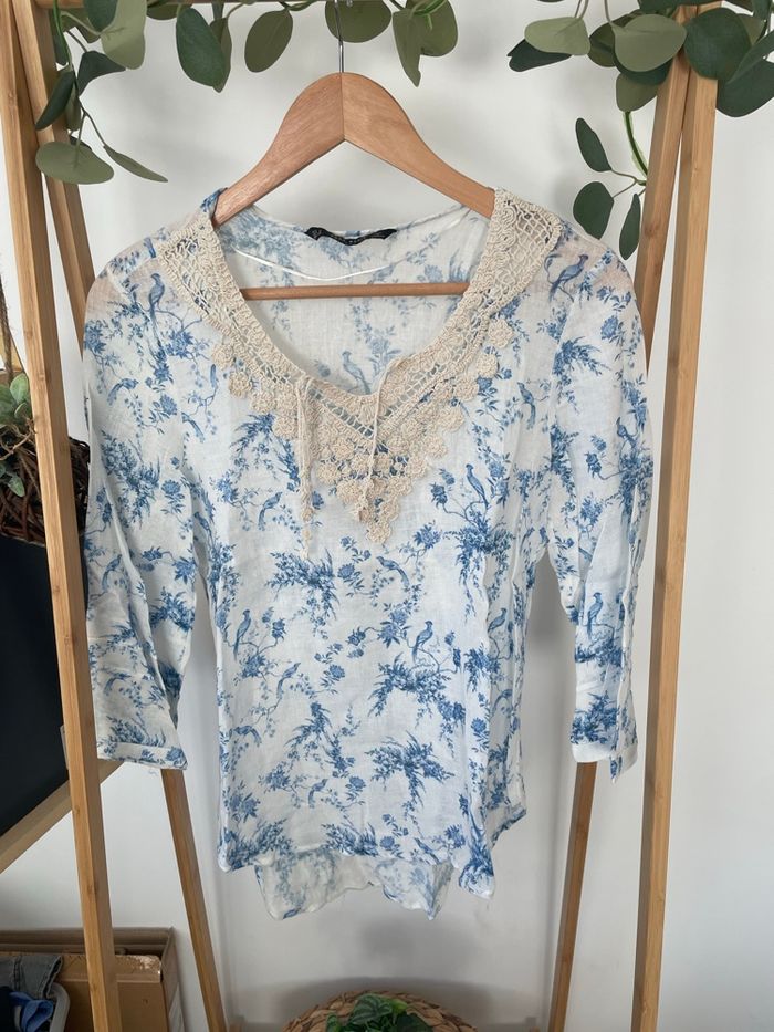 Blouse en lin manches 3/4 Zara S/36 - photo numéro 1