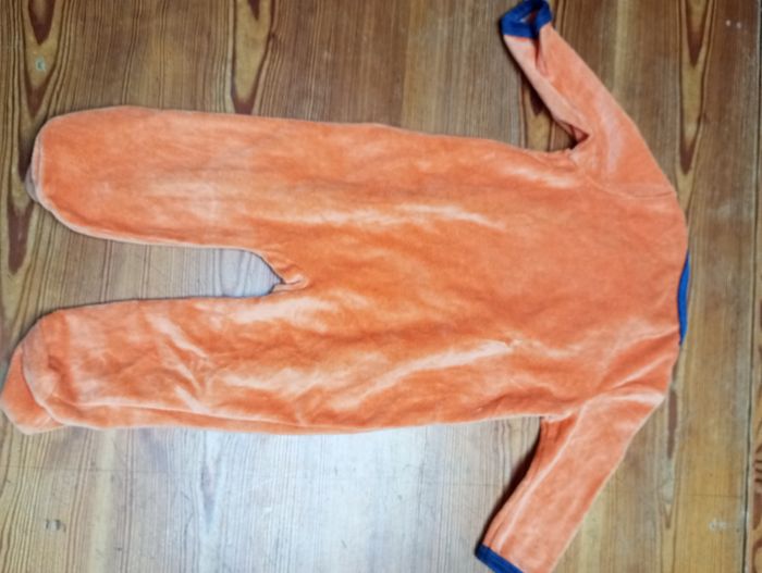 Joli pyjama hiver, orange et bleu marine. Fermeture sur le devant. Très bon état.