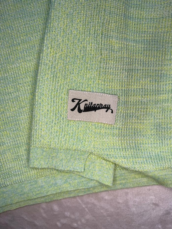 Vends ce débardeur (pull sans manches) en maille légère de la marque Zara. Idéal pour un look superposé ou porté seul à la mi-saison. Caractéristiques : Marque : Zara Taille : XL (EUR XL / USA XL / MEX 44) Couleur : Vert citron / pistache chiné Détails : * Col rond avec bord-côte Écusson "Knitapray" brodé sur le bas du vêtement Coupe légèrement asymétrique avec fentes latérales État : Très bon état général Dimensions (prises à plat) : Largeur (aisselle à aisselle) : environ 58-60 cm Longueur totale : environ 68-70 cm Envoi rapide et soigné ! ✨ #8