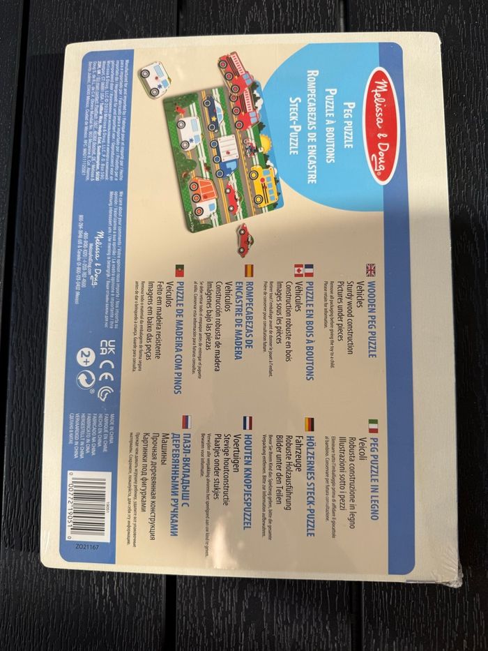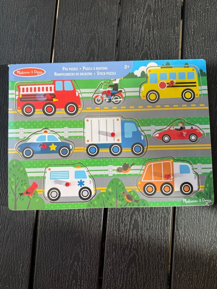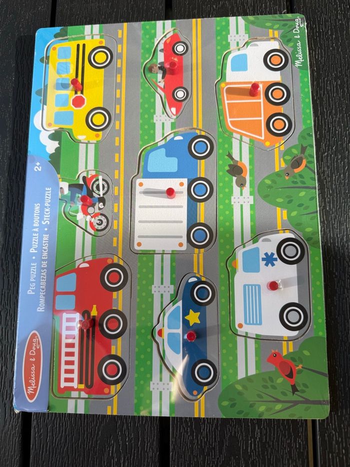 Melissa & Doug wooden toys-puzzle with pegboard’s for vehicle learning toy for 2years old toddlers and kids 2/3/4 years old Neuf avec étiquette