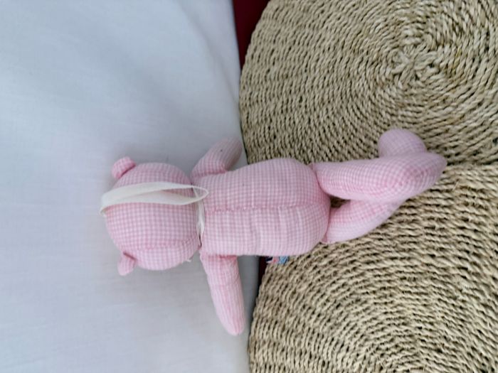 Sucre D'orge Vintage Doudou Ours Vichy Rose Blanc - photo numéro 5