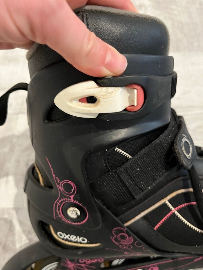 Rollers femme en bon état Taille 41 Qq marques d’usure voir photo mais reste en bon état Marque oxelo Envoi soigné et rapide dans la mesure du possible