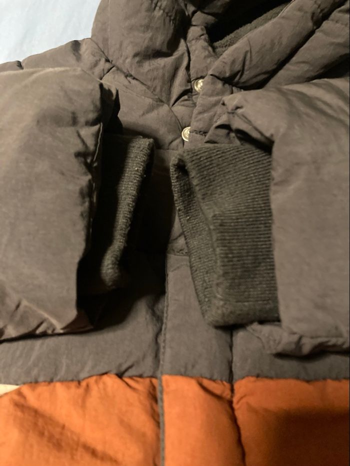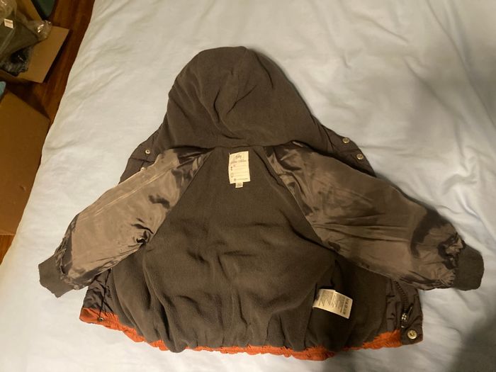 Doudoune grise et marron pour garçon taille 3 ans. Intérieur et capuche doublés en polaire. Réf. H2