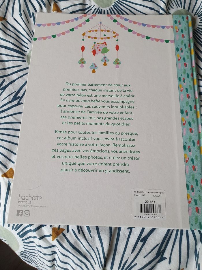 Le livre de mon bébé, Hachette pratique, parution 2025. Modèle mixte. Parfait pour le livre de naissance de bébé. Neuf, jamais utilisé. Malgré cela, une petite marque en haut de la couverture (très discrète) et une petite trace en quatrième de couverture (voir photos). Remise sur les lots.
