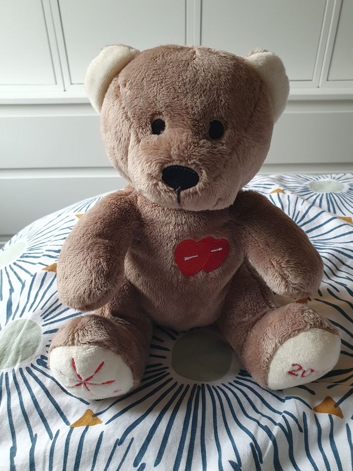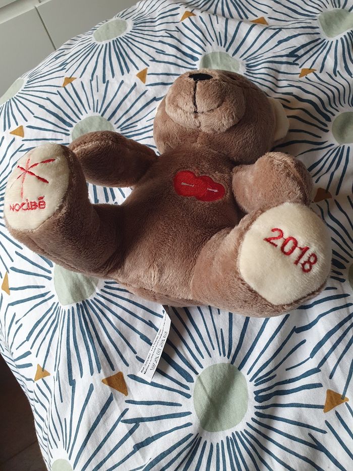 Petit ours brun Nocidou de Nocibé, peluche collection 2018. Deux cœurs rouges brodés. Remise sur les lots.