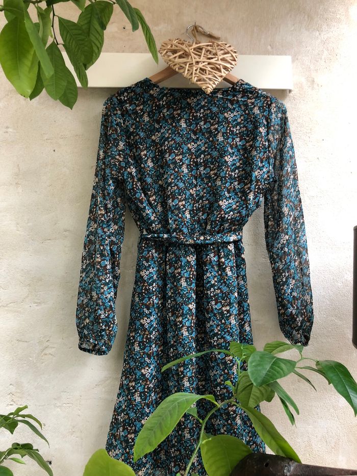 Petite robe légère en voile doublée,xs,taille très bien. Marron et bleue ,vert ,super a porter avec un blouson daim et bottines.(le blouson n'est pas à vendre) Neuve avec étiquette ( trop petite pour moi )