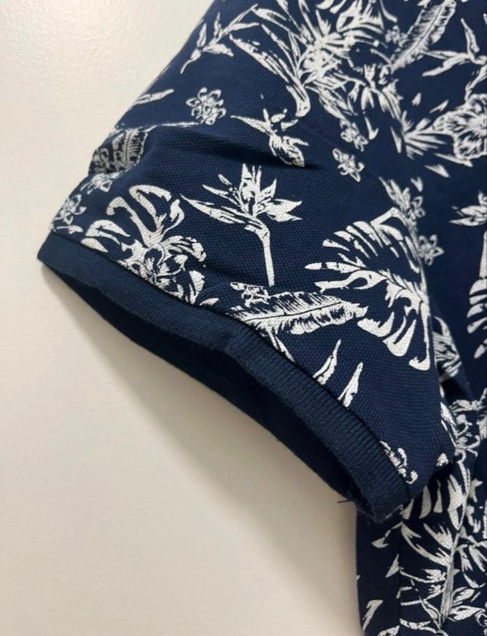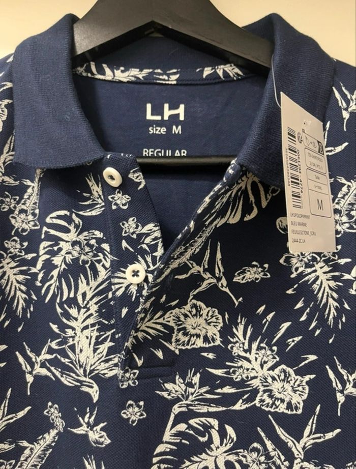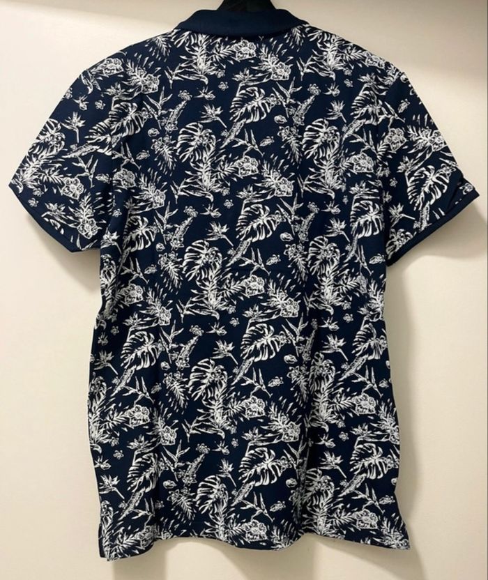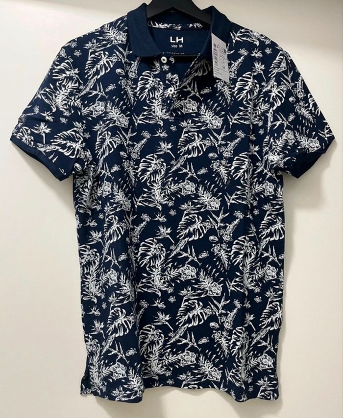 Neuf avec étiquette, matière pas trop légère, petite ouverture de chaque côté en bas du polo, 2 boutons au niveau du col.