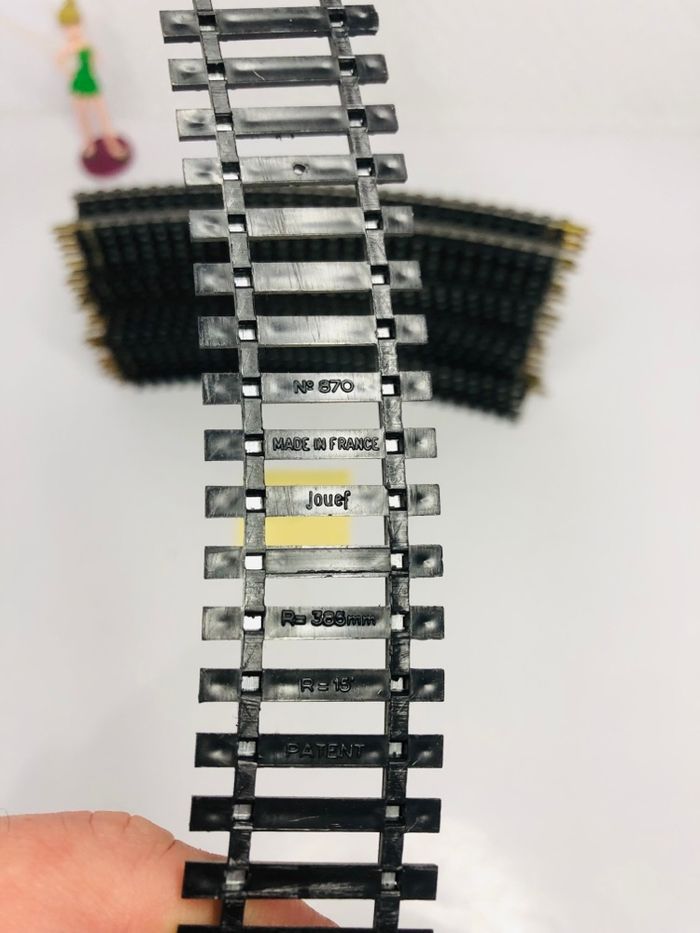 Rails courbes Jouef N 870 R 385mm R 15°, parfaits pour compléter votre réseau ferroviaire miniature. - Type de produit : Rails courbes - Marque : Jouef - Modèle : 870 En très bon état