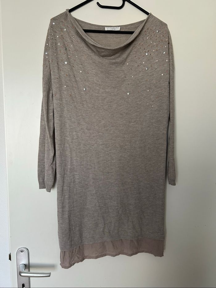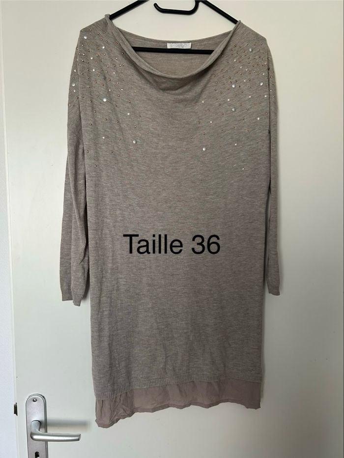 Porté quelques fois Pull robe fin manches 3/4 Longueur de la robe 80 cm Taille 0 Matière coton et acrylique #promod #robefemme
