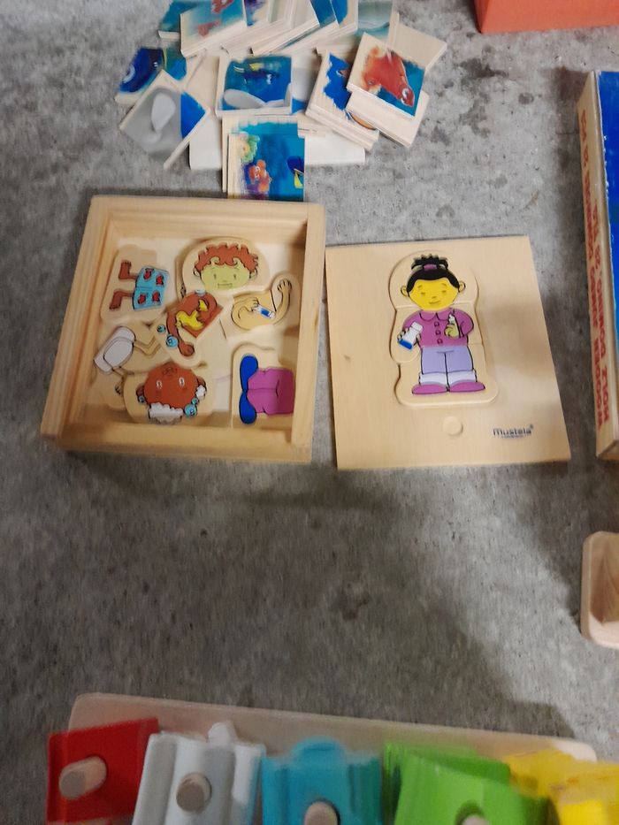 Plusieurs jeux d'éveil, puzzle, dominos en bois, Montessori, piano Vtech (fonctionne parfaitement)... A récupérer sur Lyon ou envoi possible. Fisher Price / Lamaze / Tony Love / Playmobil / Lego / Lunii / Little Dutch / Janod