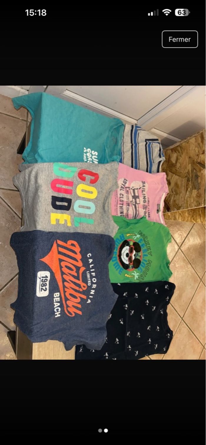Lot affaires garçon 3 ans En très bon état Un ensemble chemise pantalon, un ensemble pull jogging, 4 ensemble tee shirt short , 10 tee shirt et 6 short