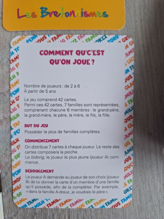 Jeu de 7 familles avec livre de 84 pages Les bretonnismes