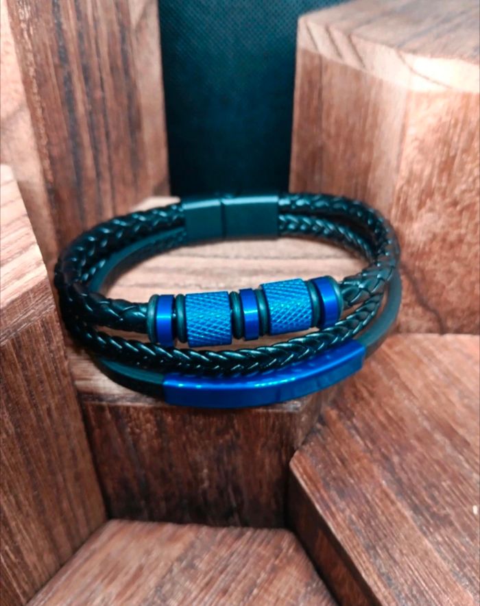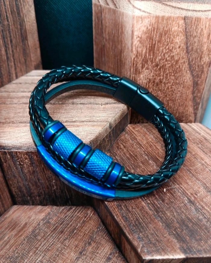 Bracelet tressé en cuir, élégant et robuste, doté d’un fermoir magnétique pratique et sécurisé, facile à mettre et à retirer. Sa longueur de 21 cm convient à la majorité des poignets adultes, pour un style mixte (homme & femme).