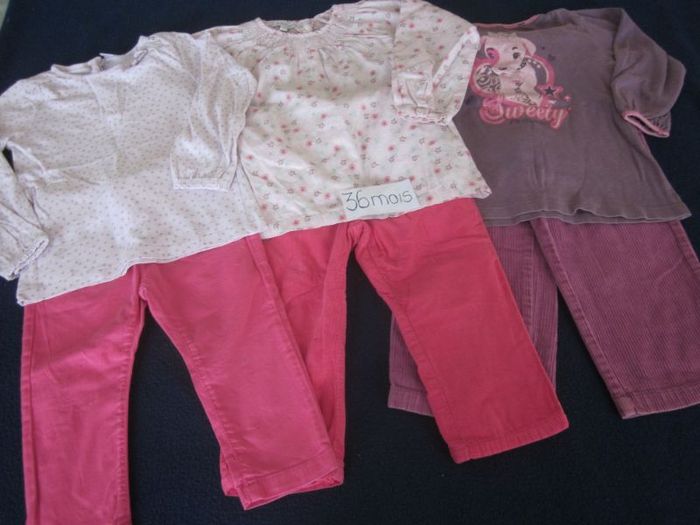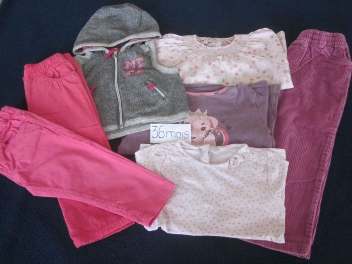 36m, 3 pantalons + 3 hauts ml + veste à capuche sans manche, tex, in extenso, zen jeans, orchestra