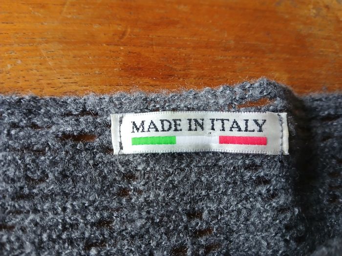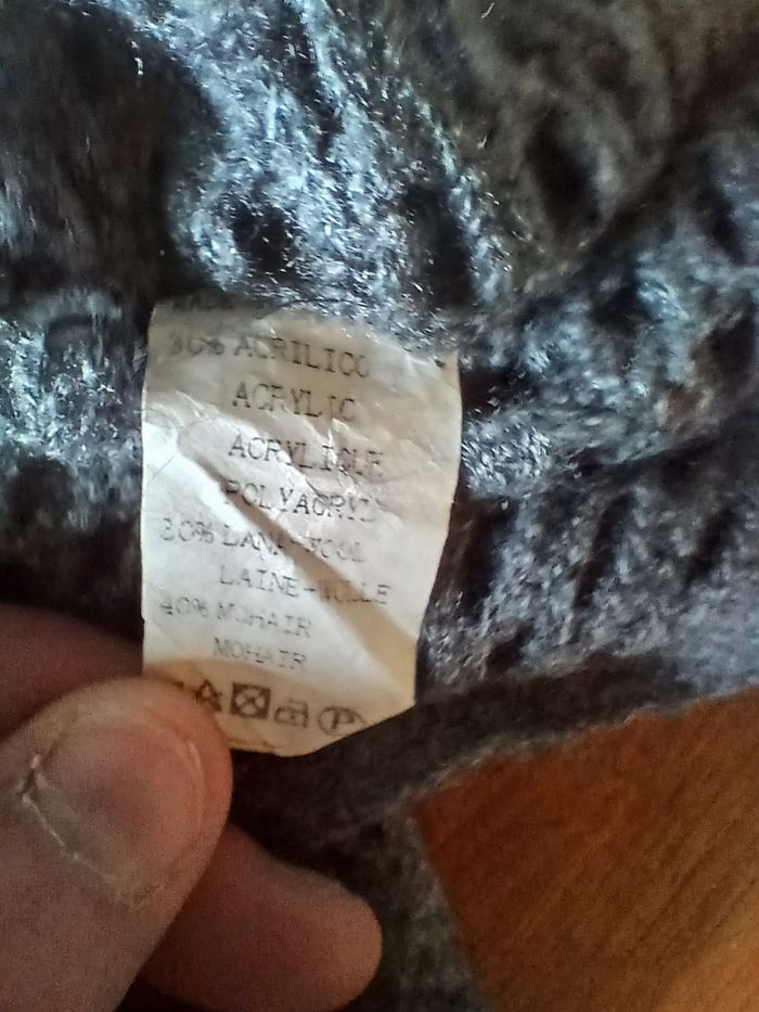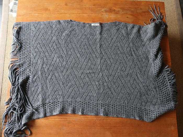 Poncho gris ajouré. Acrylique, laine et mohair. Très bon état
