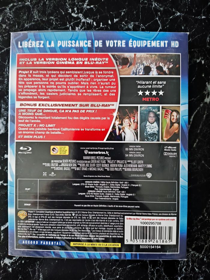 Film Projet X (2012 - Project X) neuf encore sous blister. Comédie de Nima Nourizadeh avec Thomas Mann, Oliver Cooper et Jonathan Daniel Brown. Plusieurs autres films (DVD et blu-ray) et séries télé disponibles sur mon dressing. Si vous avez des questions ou souhaitez plus de photos, n'hésitez pas à me demander. Prix négociable seulement si vous achetez plusieurs articles. N'hésitez pas à créer un lot et à faire une proposition raisonnable et à me demander un prix. Tag de recherche : #neboo_video #neboo_bluray #neboo_film blu ray bluray langue français française French FR