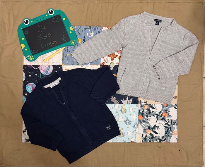 Gilets en mailles zippés Garçon Bleu marine et gris Très très bon état, ils ont étés portés qu’une ou deux fois pour des événements Marque gemo et Kiabi Gilet en maille bleu marine, Garçon Taille 24mois Marque orchestra Neuf jamais porté #vetementsgarcon #24moisgarcon #vetements24mois #tresbonetat #giletenmailles #kiabi #gemo