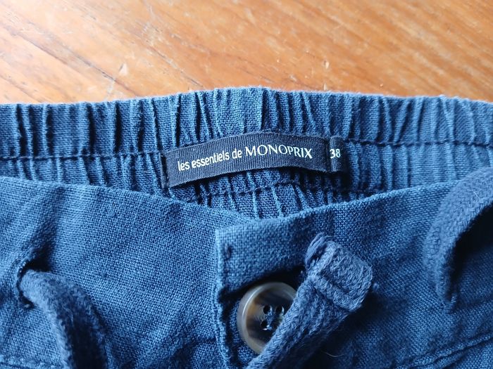 Pantalon en lin bleu marine de la marque Monoprix. Taille 38. Très bon état