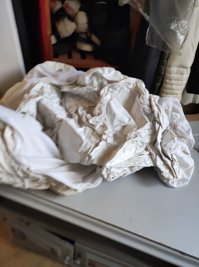 Lots de draps plats (4 ) 2 a fleurs , 1 bleu et un violet (90x140 ou 90x190). 1 housse de protection (90x140), un draps housse bleu ( pour lit bb) et une housse de couette rose et blanche . (90x140) 2 taie d'oreiller ( une violetta et une a fleur ) . Toute marque confondu. Tout est pour une personne
