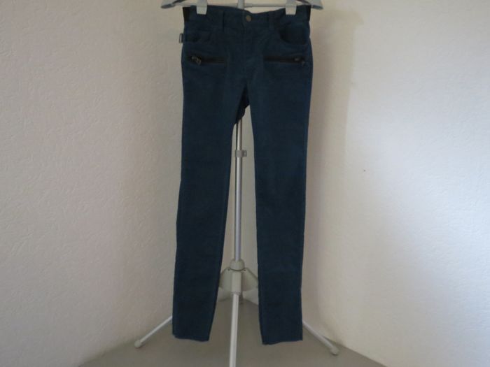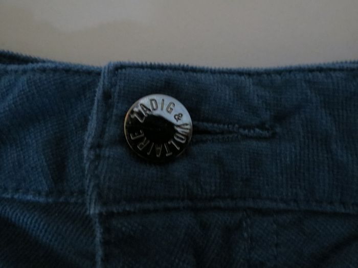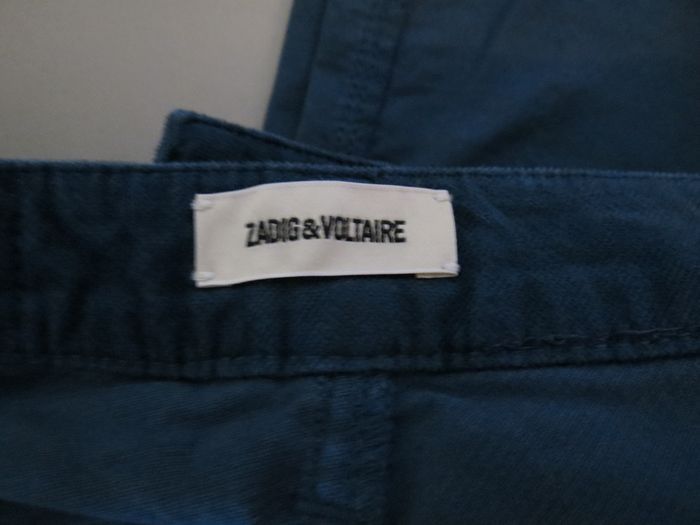 pantalon zadig&voltaire iconique, modèle eva zip, une valeur sûre de la marque 💥 ✨ détails taille 38 coupe slim flatteuse matière velours doux et confortable coloris bleu profond, facile à assortir poches zippées signature zadig pour le twist rock chic 🖤 bouton gravé zadig&voltaire 👖 style parfait avec une maille, un blazer ou un t-shirt blanc pour un look casual chic, ou plus rock avec des boots ⚡ 📦 état très bon état, bien entretenu, aucune tache ni défaut visible 💎 pourquoi on l’adore ? qualité premium, coupe canon et détails zippés qui font toute la différence. un basique chic avec du caractère. envoi rapide & soigné 📬 n’hésite pas si tu as des questions 💬 C3