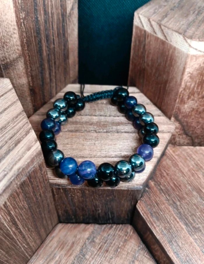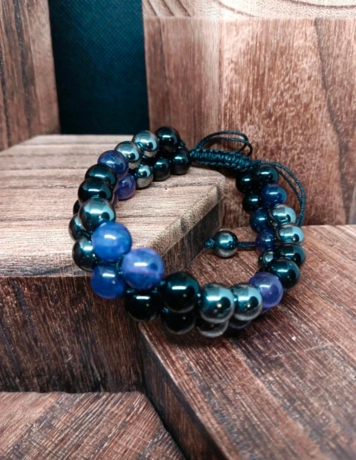 Bracelet tressé ajustable en pierre minérale d'onyx, hametiste–Énergie & style