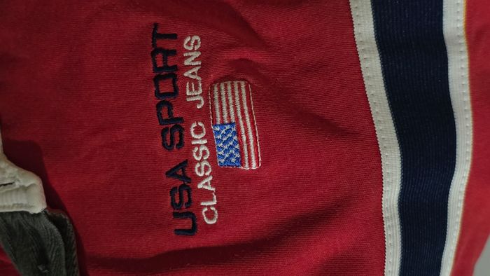 Polo manches longues de rugby vintage USA Sport rouge blanc et bleu marine taille L/XL. En très bon état. Envoi rapide et soigné. Négociable.