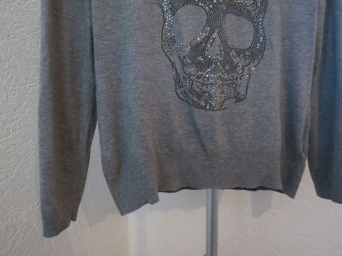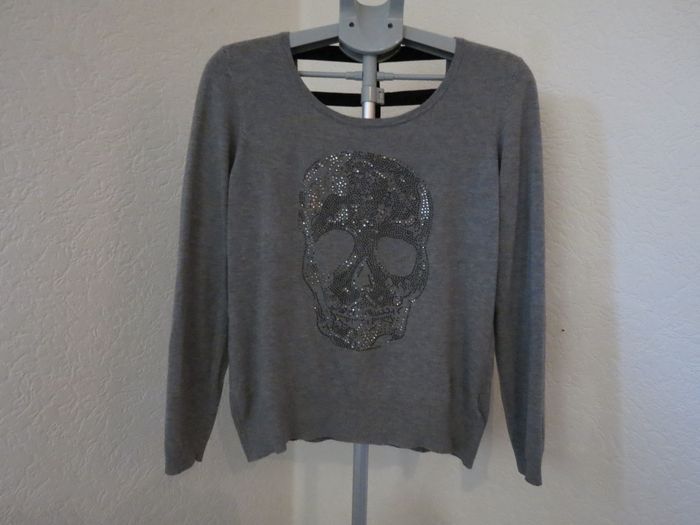 pull gris breal tête de mort strass T4 - photo numéro 9