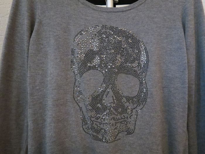 pull gris breal tête de mort strass T4 - photo numéro 1