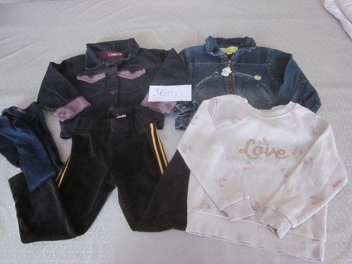 36m, 2 vestes jean + sweat + pantalon + collants pailletés, stéréo, orchestra, caméléon