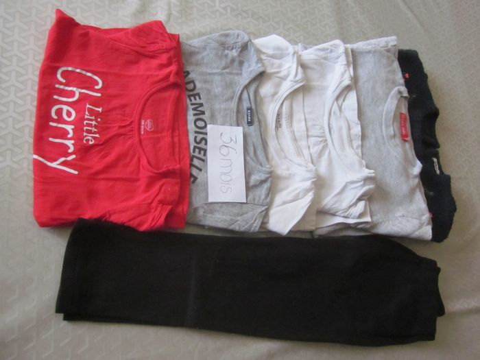 36m, pantalon + 2 pulls + 4 hauts ml, mots d'enfants, kiabi, tissaia