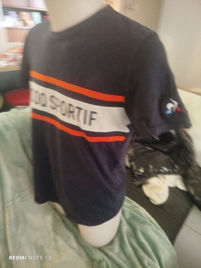 #kytieLhomme. Tee-shirt manches courtes taille L de marque le coq sportif 🐓 bleu marine en super état mesure des épaules 45 cm des aisselles 55 cm hauteur 70 cm réf 10