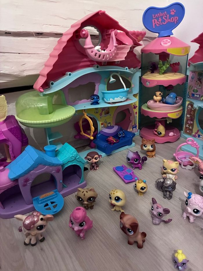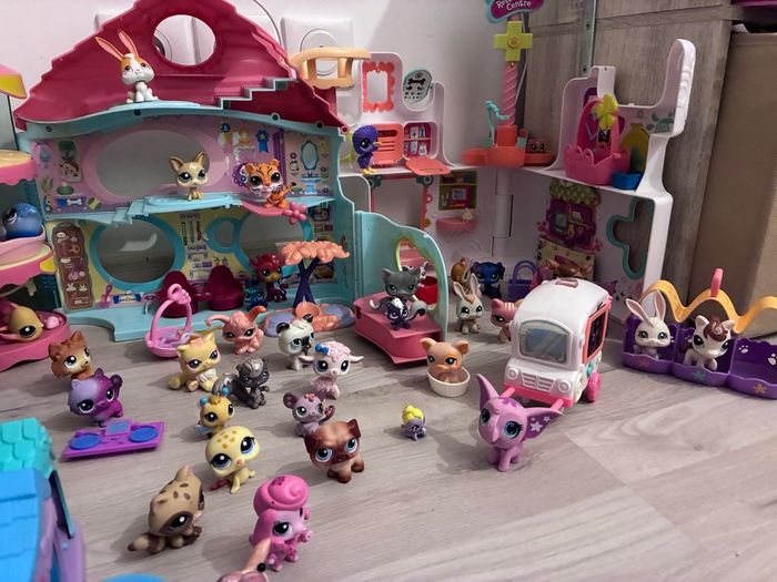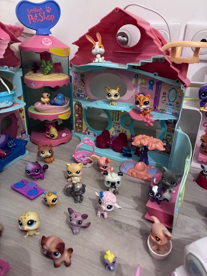 Vends très beau lot Littlest Pet Shop (LPS) comprenant : 🔹 Grande maison / centre LPS (ouvrable, plusieurs étages) 🔹 Nombreux animaux LPS (chiens, chats, lapins, animaux rares, bébés…) 🔹 Accessoires et décors : paniers, lits, véhicules, éléments de jeu, etc. Lot idéal pour collectionneurs ou pour offrir : permet de jouer immédiatement ou d’enrichir une collection.