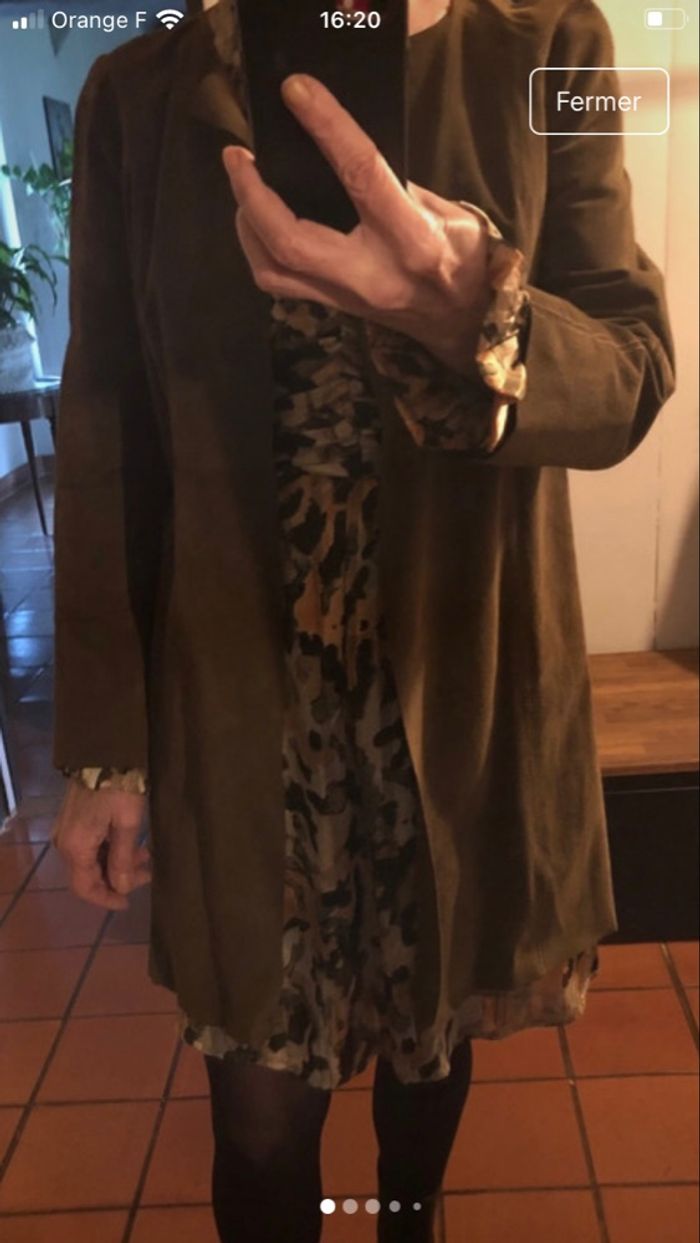 Veste longue en daimcuir de bovin kaki  - photo numéro 5