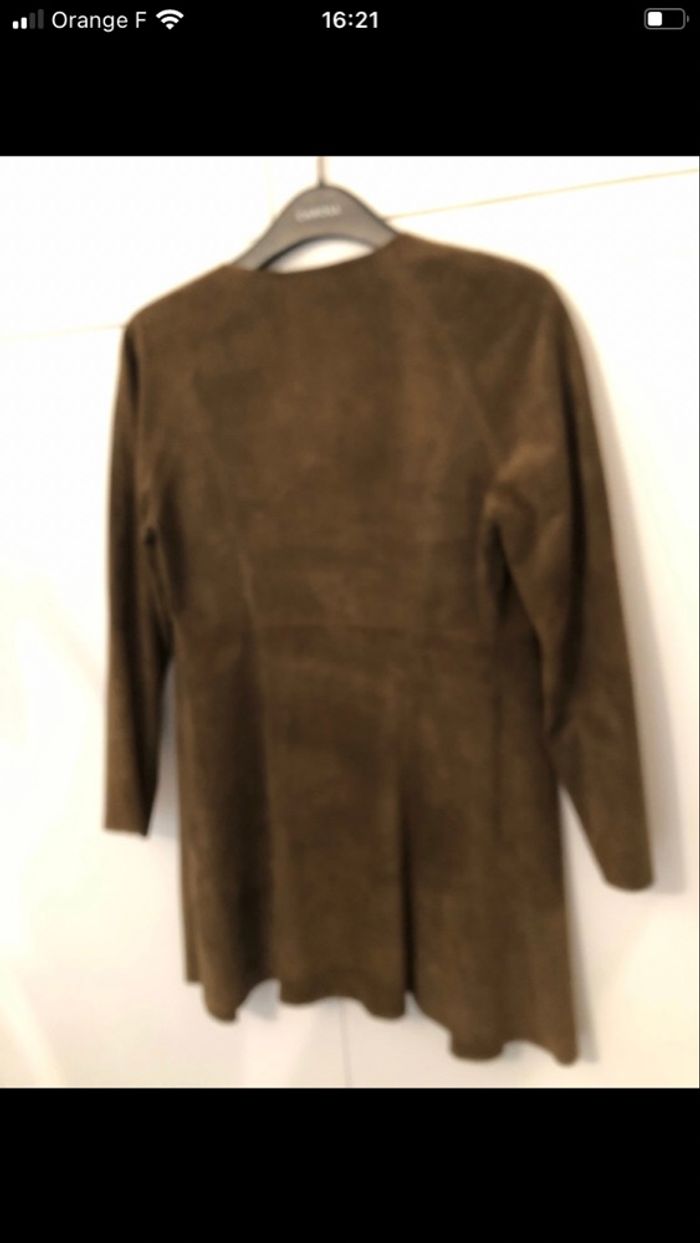Veste longue en daimcuir de bovin kaki  - photo numéro 2