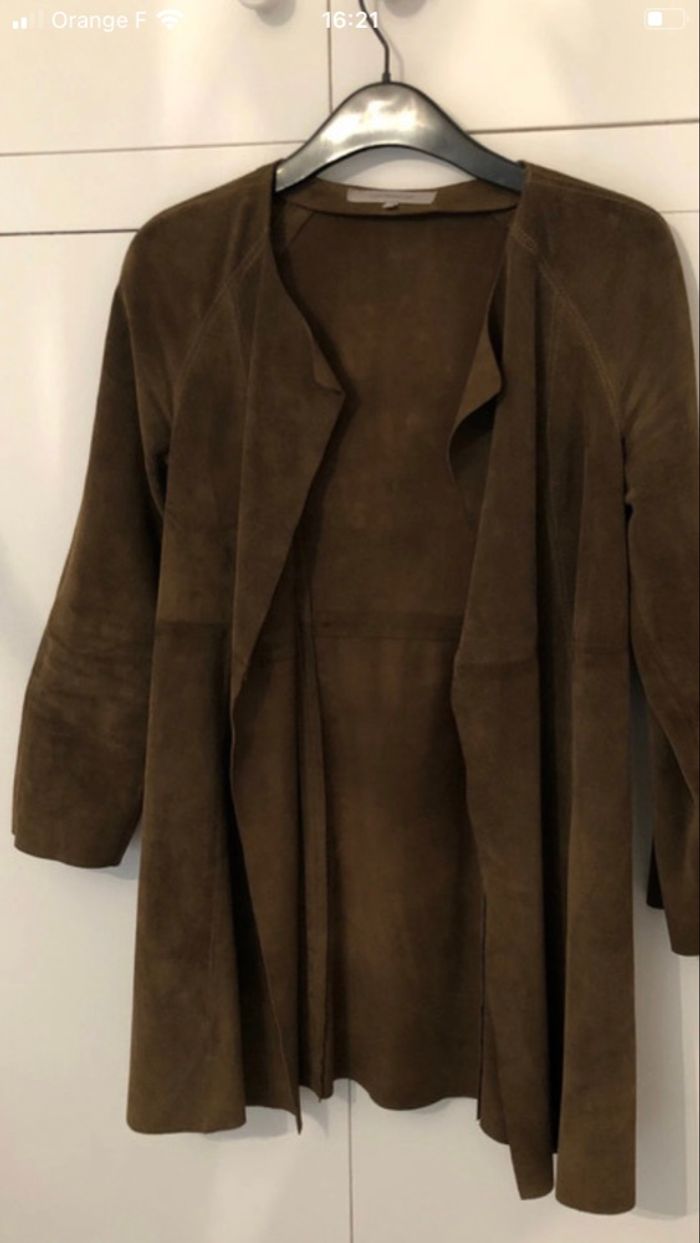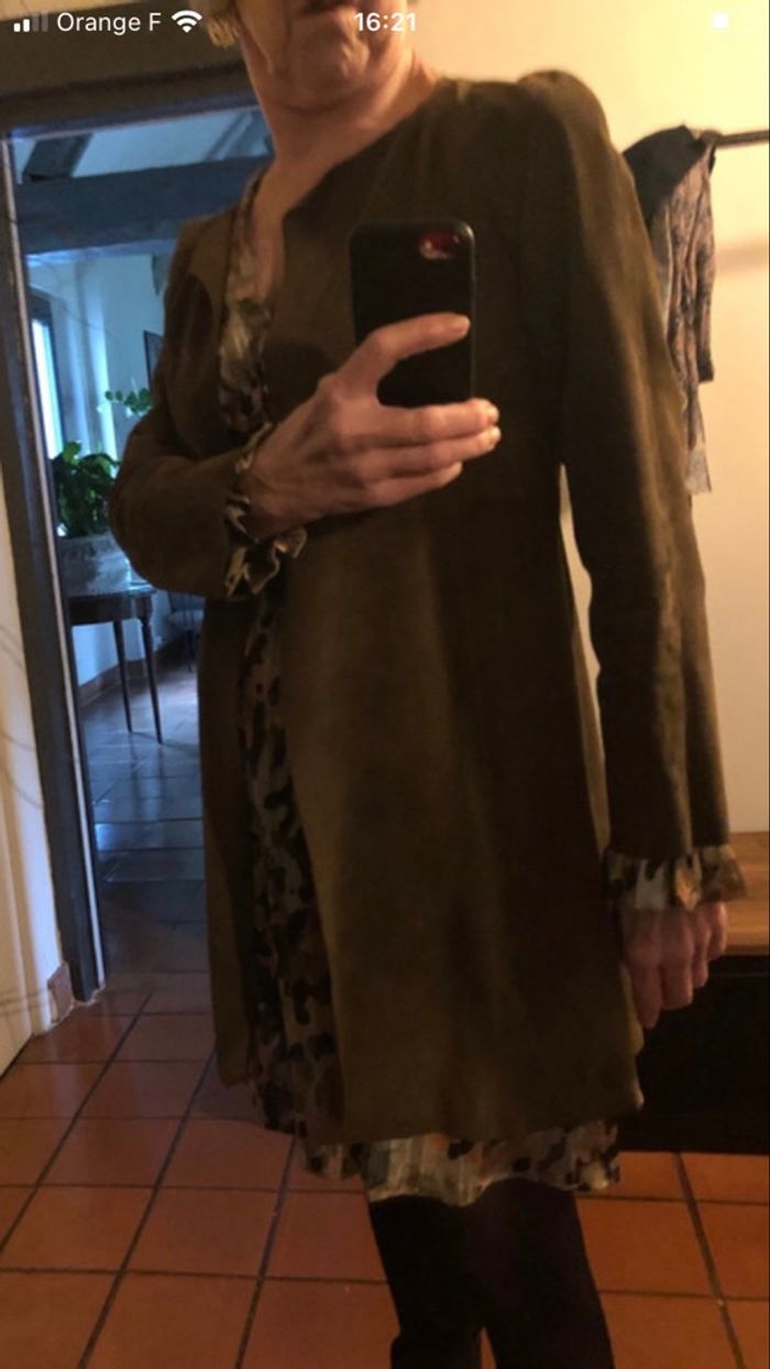 Veste longue en daimcuir de bovin kaki  - photo numéro 1