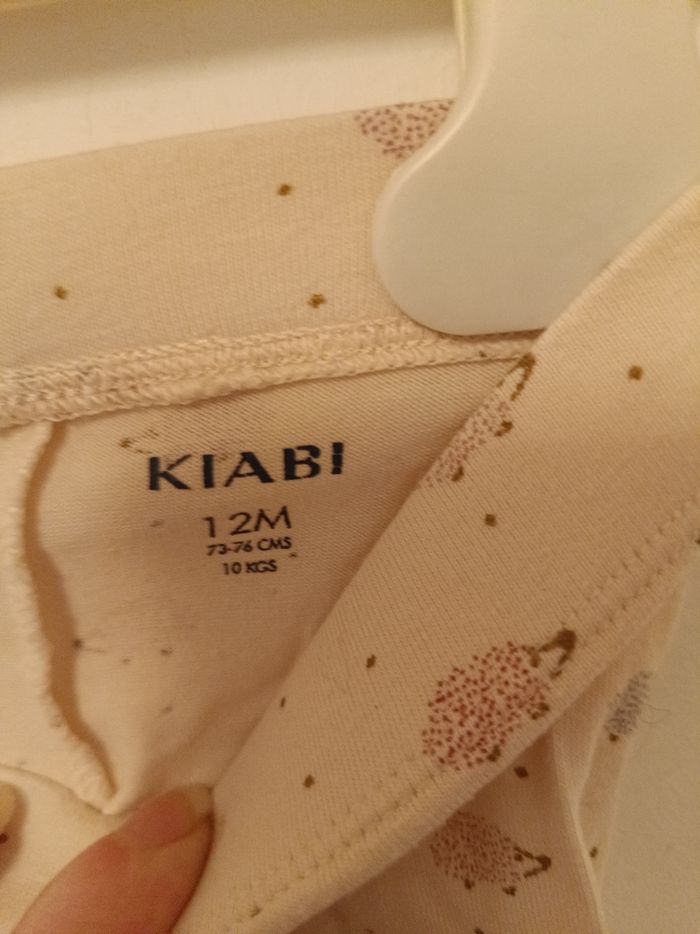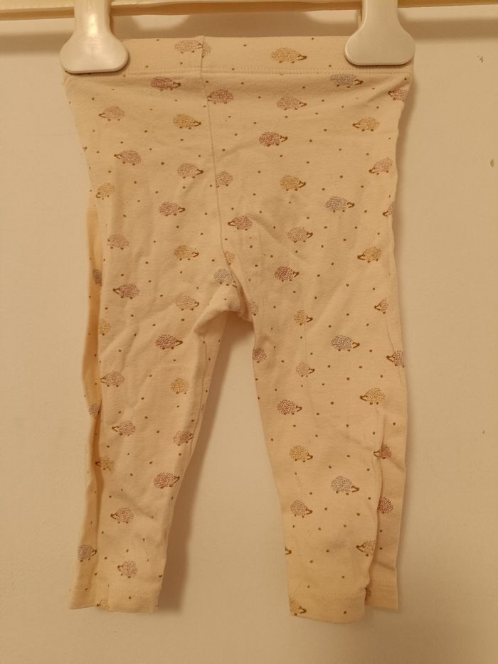 joli legging de la marque Kiabi, taille 12 mois (73-76 cm). Motifs : Petits hérissons colorés et points dorés sur fond écru. État : Bon état général. Pratique : Taille élastiquée, idéal pour le confort de bébé au quotidien.