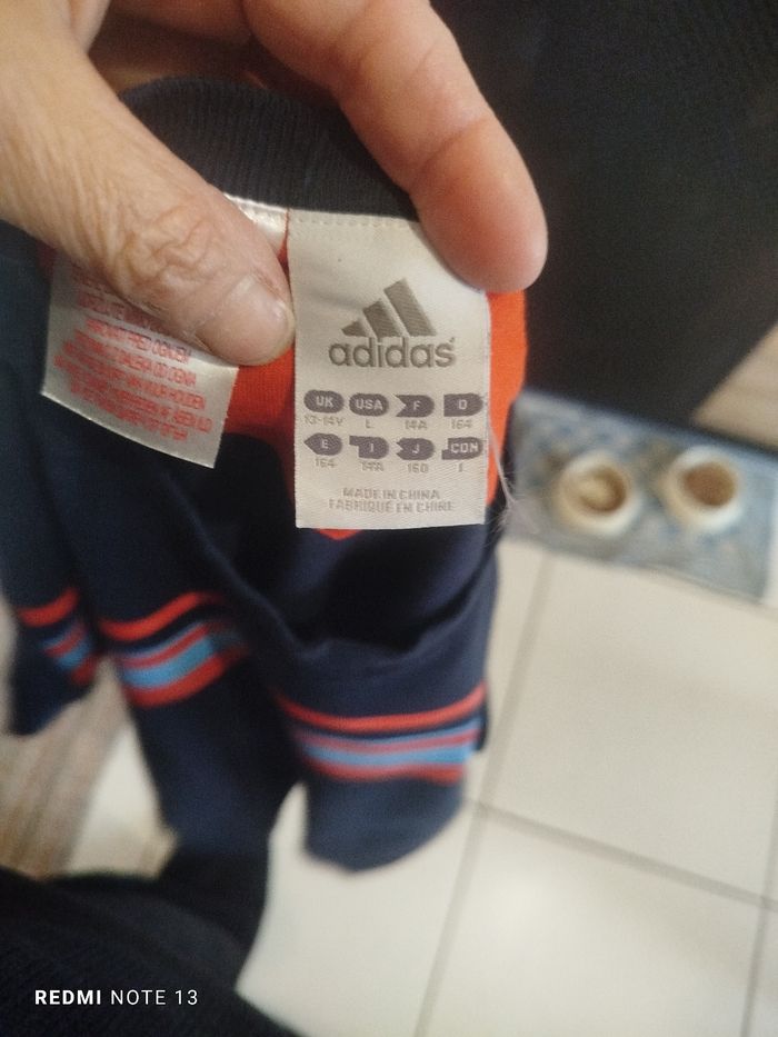 #kytie14ansgarcon. Tee-shirt manches courtes taille 14 ans de marque Adidas en état neuf Marseille mesure des épaules 36 cm des aisselles 46 cm hauteur 65 cm avec des trous d'aération brodé sous les aisselles ref 11