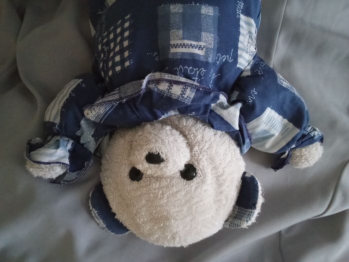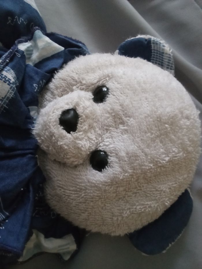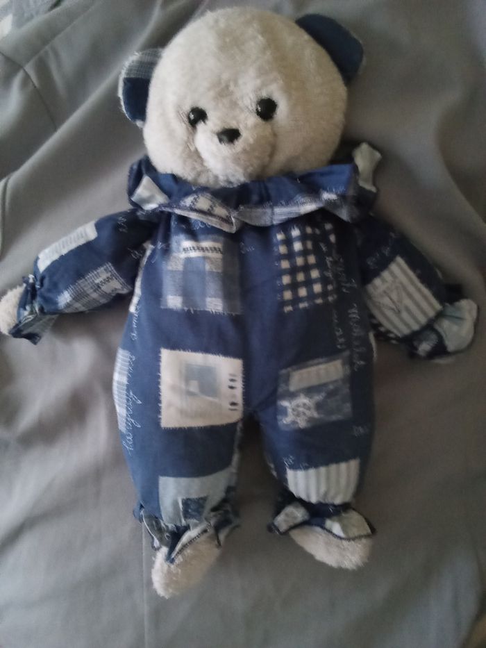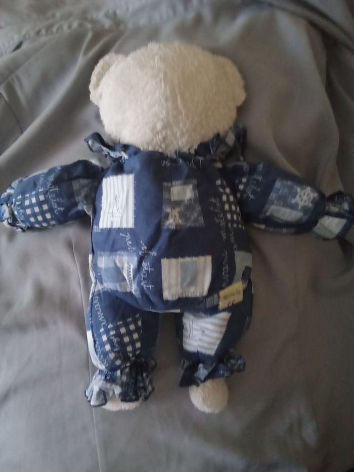 doudou peluche ours ourson bleu marine de la marque Minouche il est de 1997 son prix est de 55€ hors port et il est fixe pas de négociation SVP merci le blanc est moins écarlate que neuf Doudou a été lavé il y a longtemps il est comme sur les photos , je vous laisse le soin de le laver de nouveau En annonce c'est disponible Je vends qu'ici pas ailleurs ce modèle d'ours que j'ai collectionné sa tête est blanche / blanc en tissu éponge / bouclettes c'est le premier modèle il a pu être fabriqué à partir de 1993 vous achetez le modèle en photo son corps est en tissu bleu foncé marine avec des imprimés thème mer bâteaux ancre voilier carreaux grands blancs et bleus foncés couleur moins toniques que neuf il se lave facilement nez noir dur en plastique yeux noirs durs en plastique étiquette Minouche cousue sur la oeluche présente et en photo Minouche CE Chatillon en V 35210 France taille entre 38 cm et 40 cm +/-