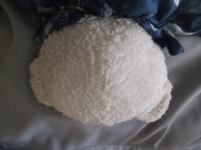 doudou peluche ours ourson de la marque Minouche Thème mer marin marine matelot tête blanche blanc tissu éponge bouclettes yeux noirs durs plastique nez noir dur posture debout ancien 1997 - photo numéro 4