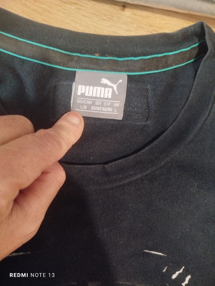#kytieLhomme. Tee-shirt manches courtes taille L de marque Puma Lewis Hamilton mesure des épaules 44 cm des aisselles 54 cm hauteur 75 cm en très bon état vintage ref 11