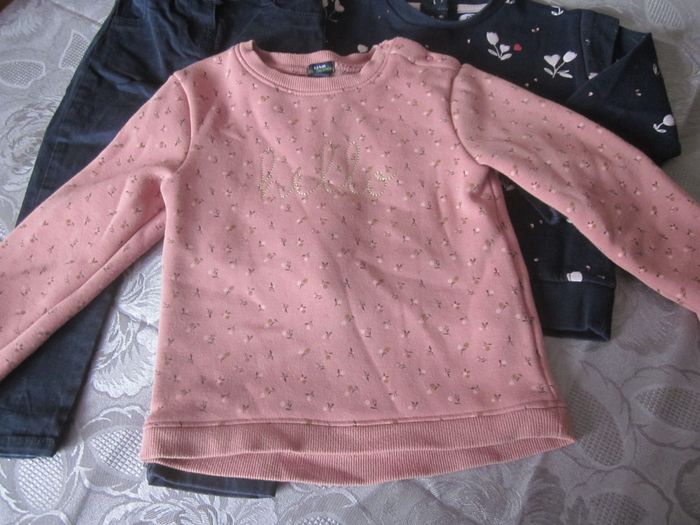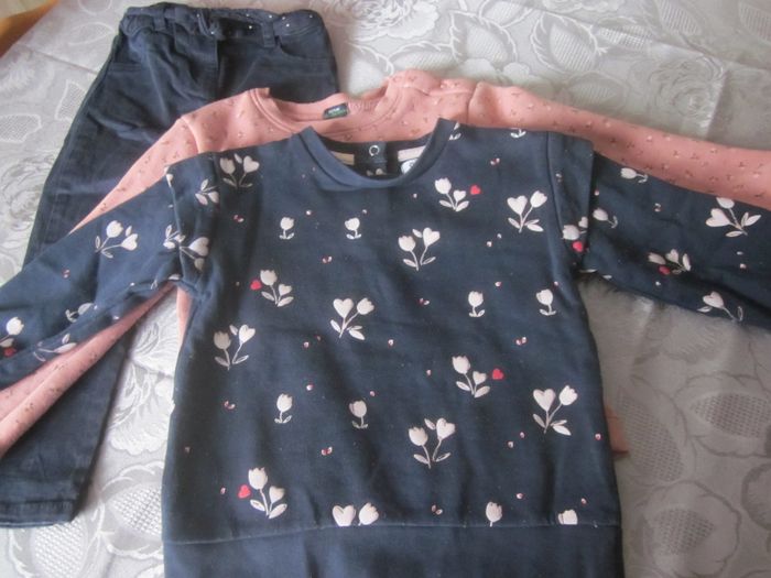 36m, pantalon + 2 sweats + gilet, gemo, kiabi